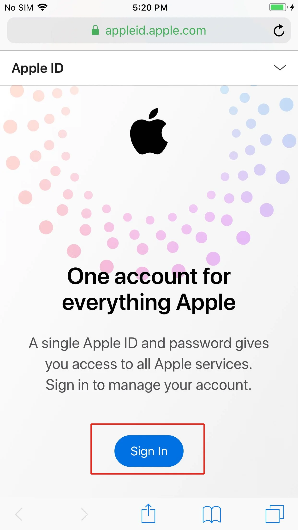 Go to https://appleid.apple.com and select "Sign In" at the top right of the page, enter your Apple ID and Password and click "Sign In".